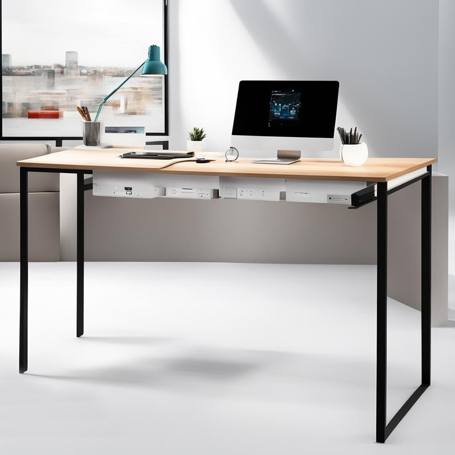 Стол с интегрированными розетками и USB-портами: Эта модель стола позволяет удобно заряжать гаджеты и подключать электронику без необходимости проводить длинные кабели по всему офису.