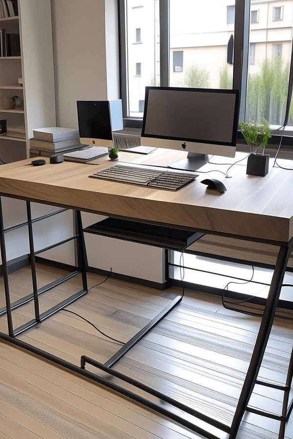 Стол с деревянной столешницей и металлической основой: Сочетание дерева и металла создает стильный и современный вид стола, при этом обеспечивая надежность конструкции и долгий срок службы.