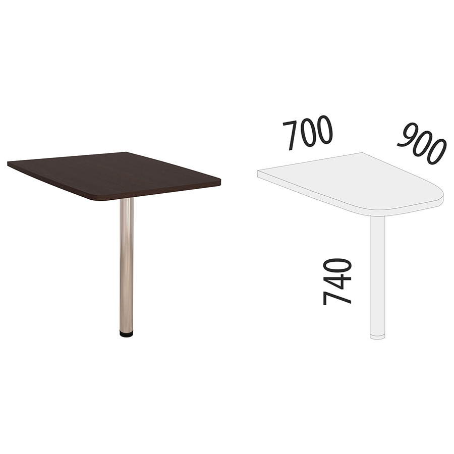 Приставка к столу «Лидер-Престиж 83.20» является частью модульного набора для офиса «Лидер-Престиж». Опора регулируется по высоте, что позволяет при установке компенсировать возможные неровности пола. С помощью этого модуля можно сделать Т-образный стол.
