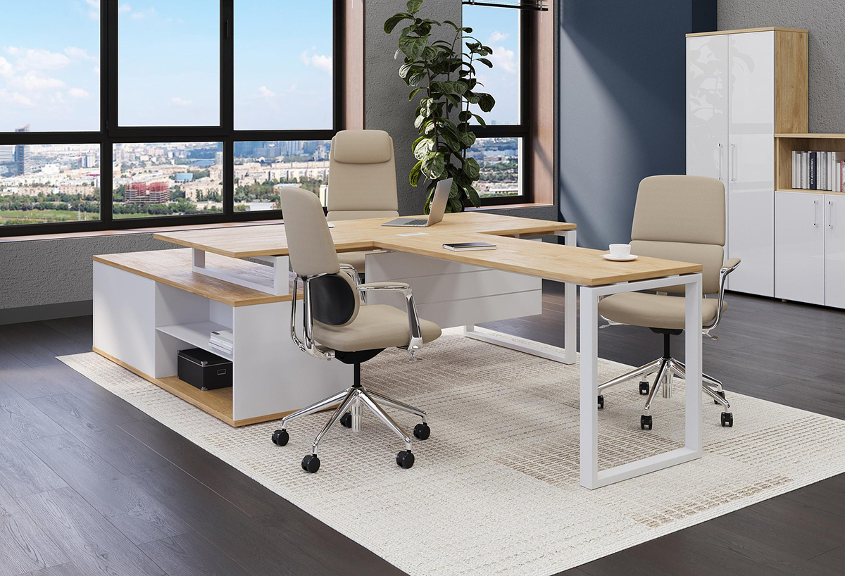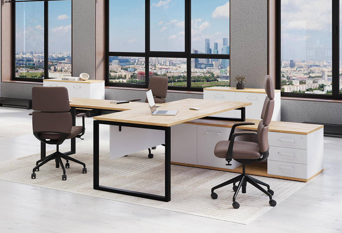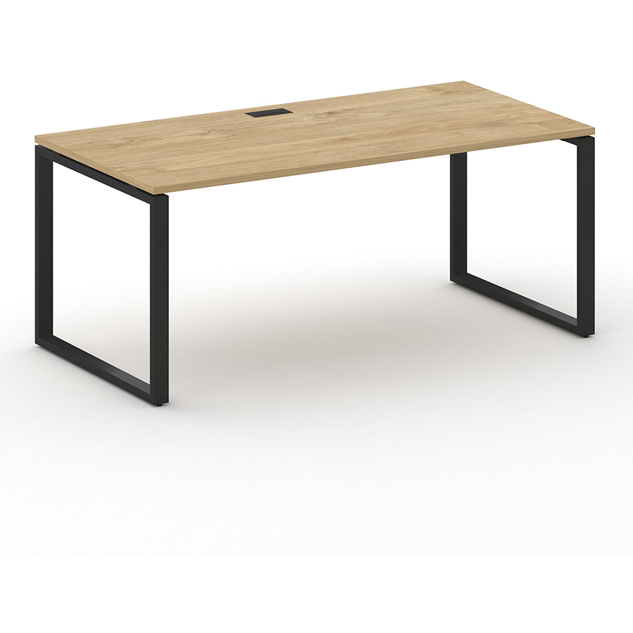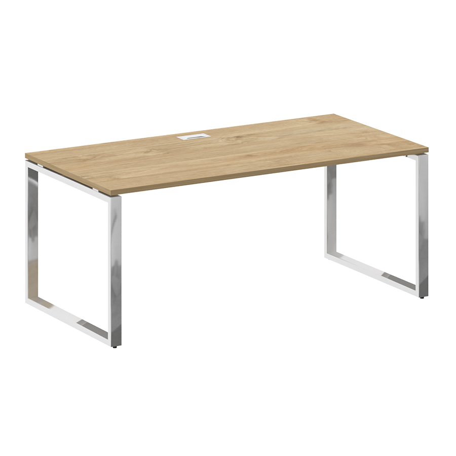 - Столешница прямоугольной формы изготовлена из ЛДСП толщиной 25мм, торцы облицованы по периметру кромкой ПВХ толщиной 2мм в цвет ЛДСП. Столешница крепится к траверсам винтами. Столешница приподнята над боковой опорой на 10 мм за счет набалдашников металлических траверс. В столешнице присутствует технологическое отверстие для установки заглушки кабель-канала размером 160;