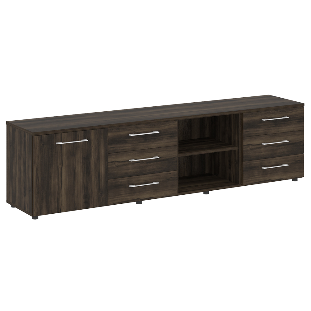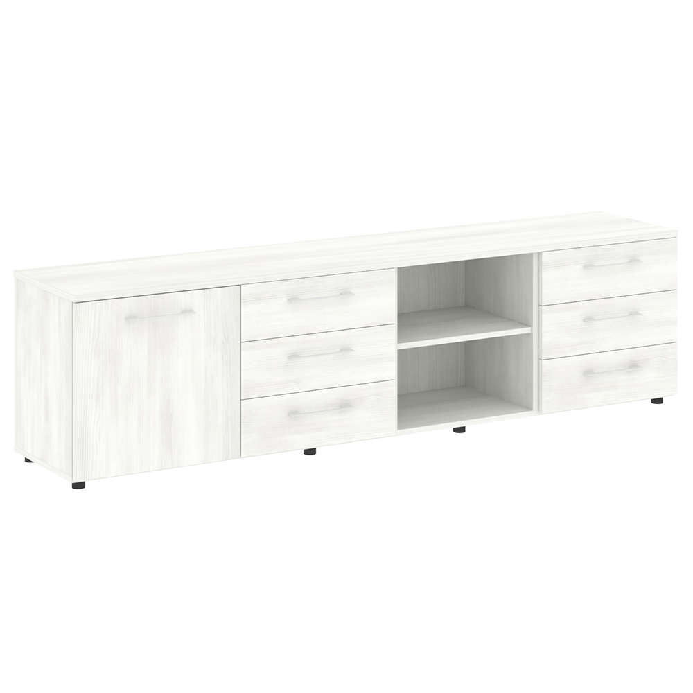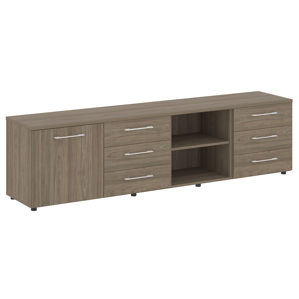 - Фасад: дверь ЛДСП, три выдвижных ящика на 2 секции и ниша;