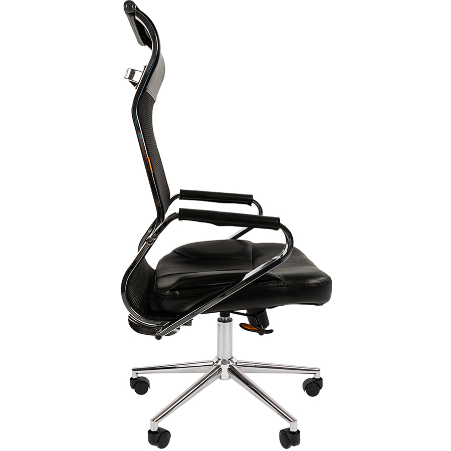 Кресло офисное CHAIRMAN 700 Сетка. Руководительское кресло нового поколения. Спинка с акриловой сеткой повышенной плотности, полностью металлический каркас и анатомическая форма всех элементов. Кресло CHAIRMAN 700 Сетка выполнено в сочетании экокожи и сетки. Имеет металлические хромированные подлокотники с накладками из экокожи. Механизм качания с синхронным отклонением сидения и спинки 1:3, и фиксацией кресла в любых положениях. Регулировка кресла по высоте производится при помощи газлифта. Комплектуется металлической хромированной базой (крестовиной). В данной модели используется газлифт 3 категории по стандарту Germany DIN 4550.