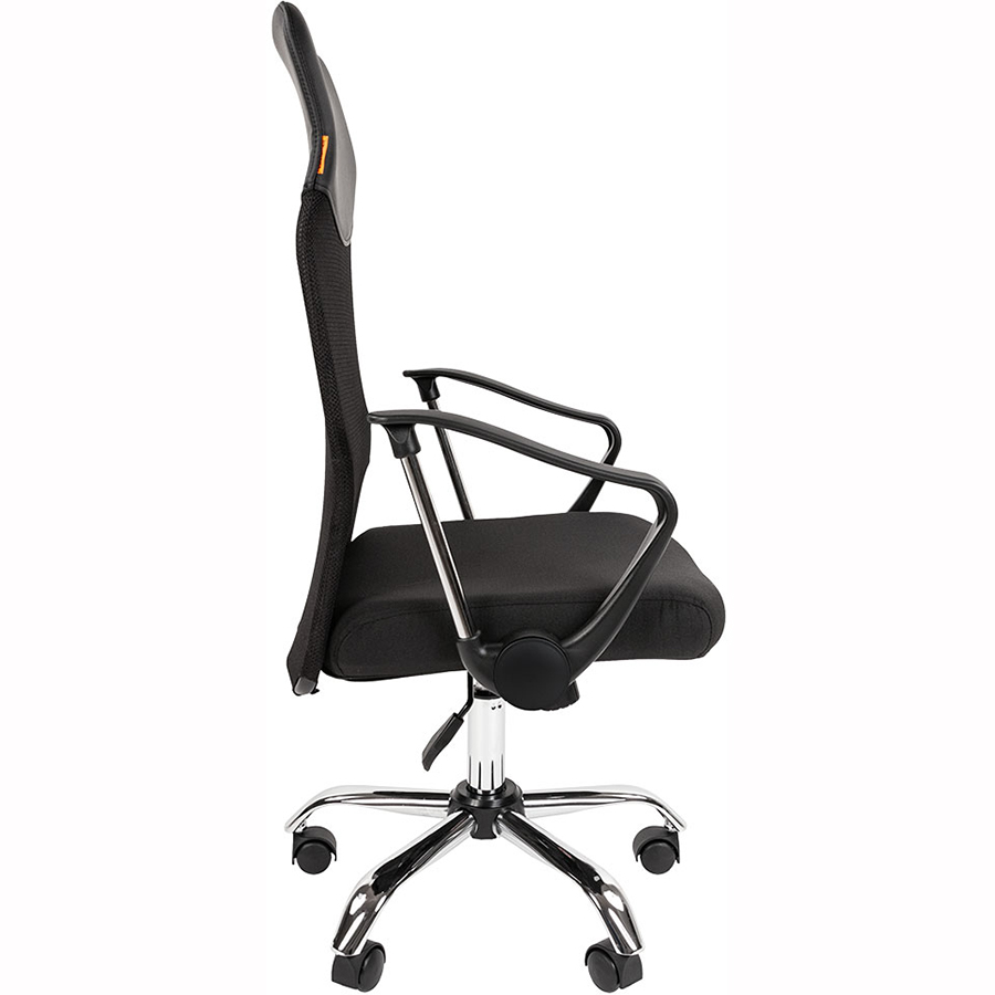 Кресло руководителя CHAIRMAN 610 - одно из самых популярных компактных кресел руководителя. Стильное, современное, эргономичное - и недорогое. Обратите снимание на яркие хромированные детали и сетчатую спинку! Сидение выполнено в ткани стандарт. Спинка выполнена из сетчатого акрила. Использование данных материалов специально продуманное дизайнерами подчеркивает привлекательность и безупречность этой модели. Кресло оснащено механизмом качания с регулировкой жесткости под вес сидящего и возможностью фиксации в рабочем положении. Пластиковые подлокотники с хромированными вставками указывают на уникальность и неповторимость. Крестовина хромированный металл. Регулировка высоты осуществляется при помощи газлифта 3 класса по стандарту Germany DIN 4550.