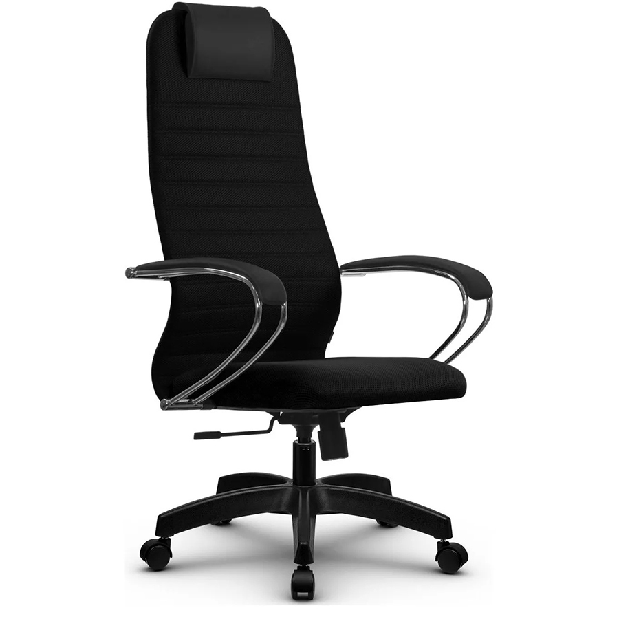 Кресло SU-ВК-10 выполнено в ткани. Эргономичная высокая спинка, система поясничной поддержки, мягкий подголовник, помогают достигнуть высокого уровня комфорта. Модель оснащена механизмом качания с возможностью фиксации в рабочем положении. Кресло комплектуется подлокотниками зеркальный хром с накладками из экокожи. Крестовина черный пластик: есть вариант комплектации хромированной крестовиной. Регулировка высоты осуществляется при помощи газлифта. Возможна доукомплектация кресла полиуретановыми роликами.