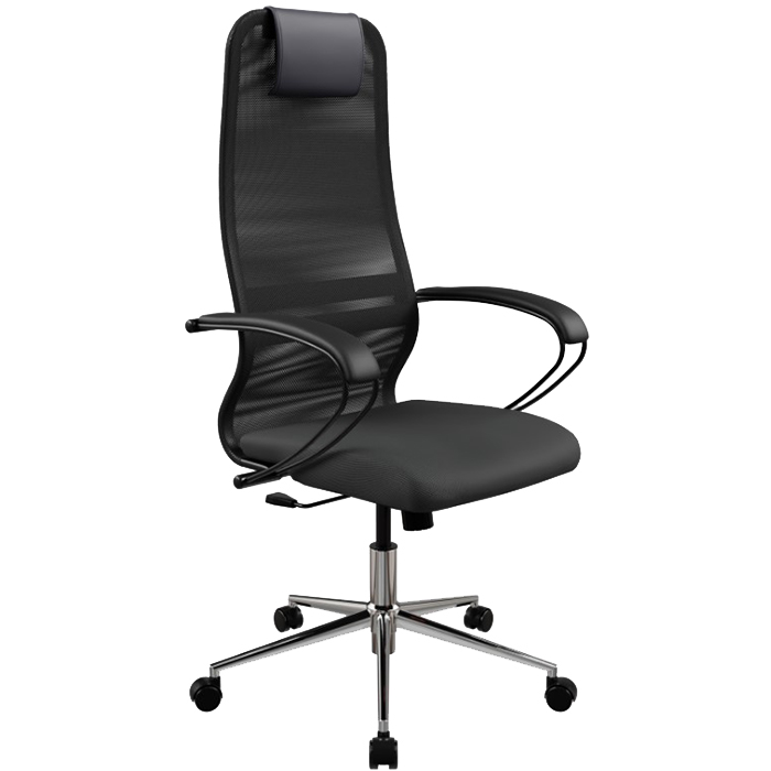 Офисное кресло Metta SU-BP-8 Ch – базовая модель Модульной линейки офисных кресел серии «SU», сочетающая в себе необходимые настройки, эргономичную форму, соответствующую анатомической форме человека, современный дизайн и максимальный комфорт по доступной цене. Особенностью, отличающей данную модель от кресла SU-BK-8, являются подлокотники с покрытием черного цвета. Спинка кресла выполнена из сетки, сиденье из ткани. Кресло укомплектовано металлической крестовиной с покрытием зеркальный хром.