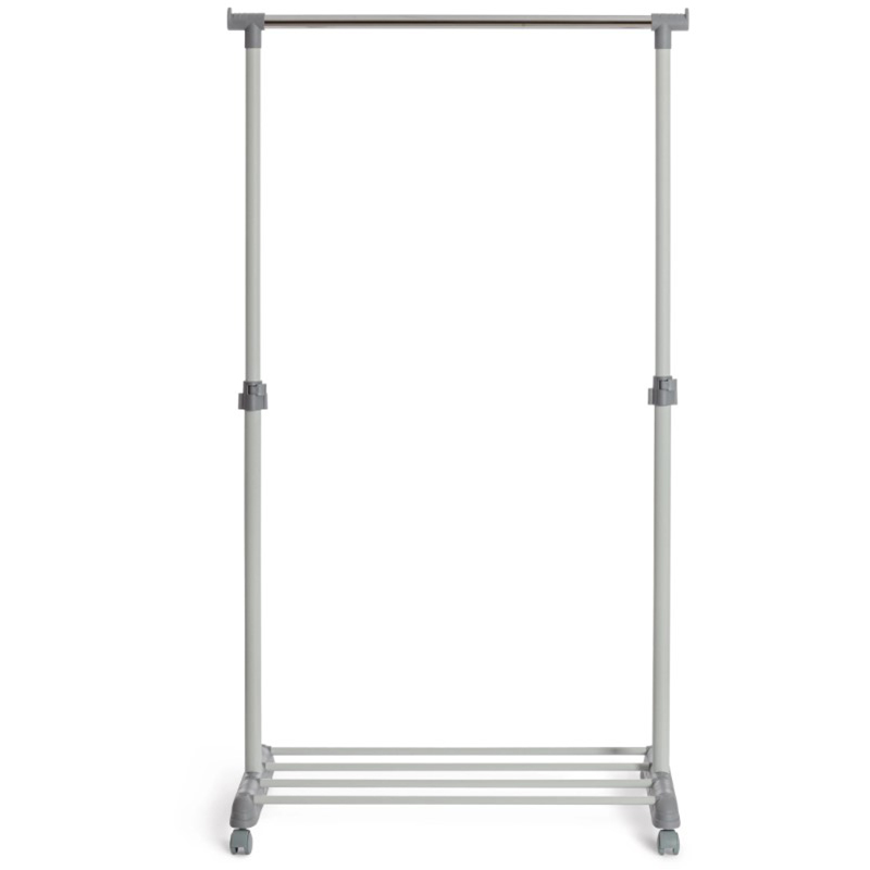 Практичная и оригинальная напольная вешалка ODENT отлично впишется в интерьер прихожей, гардеробной или офиса. Такая система хранения способна заменить стационарный шкаф для одежды, не занимая при этом много места в спальне или офисе. Компактная модель поможет распределить всю вашу одежду, навести порядок и создать желаемый уют в доме или офисе. Вешалка регулируется по высоте и надежно фиксируется в разных положениях. С помощью небольших колесиков ее можно легко перемещать из одного места в другое. Модель оснащена вместительной полкой для обуви. Серый каркас вешалки и хромированная штанга смотрятся стильно и оригинально. Сочетание металла и пластика делают модель основательной и устойчивой. Изящный и простой дизайн напольной вешалки позволяет вписать ее в любой современный интерьер. Удобная и компактная модель ODENT прослужит долгие годы, не требуя специального ухода. Модель очень проста в сборке.