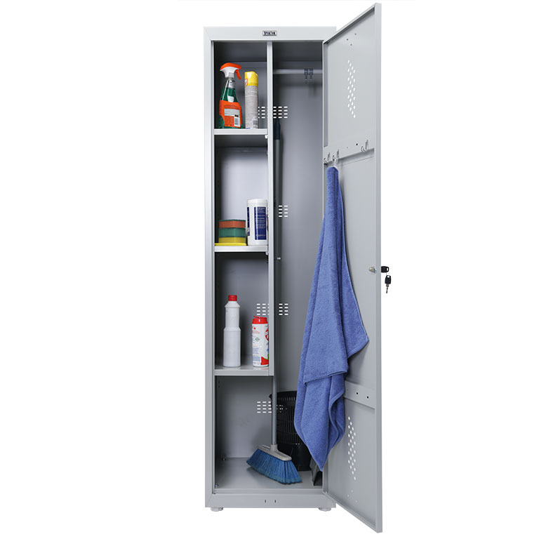 - комплектация: вертикальная перегородка, 3 полки под хозяйственный инвентарь, держатель для швабры, крючки для одежды, перекладина для плечиков;