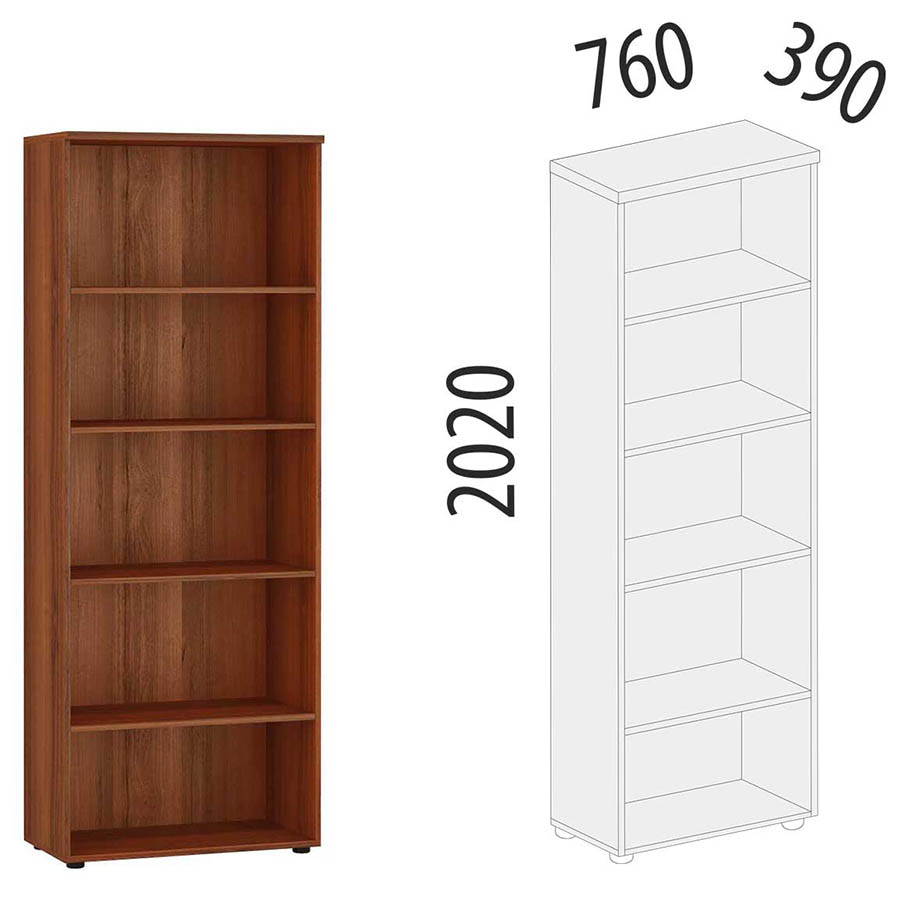 Стеллаж «Альфа 62.40» является частью модульного набора мебели для офиса «Альфа». Модуль разделен полками на пять секций. Устойчивость конструкции придают межсекционные стяжки. Регулируемые по высоте ножки компенсируют возможные неровности пола.