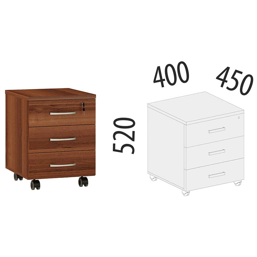 Тумба с тремя ящиками «Альфа 62.47» является частью модульного набора мебели для офиса «Альфа». Верхний ящик имеет встроенный замок. В комплекте к замку тумбы прилагаются два ключа. Колесные опоры позволяют легко перемещать модуль. Металлические ручки подчеркивают современный дизайн модели.