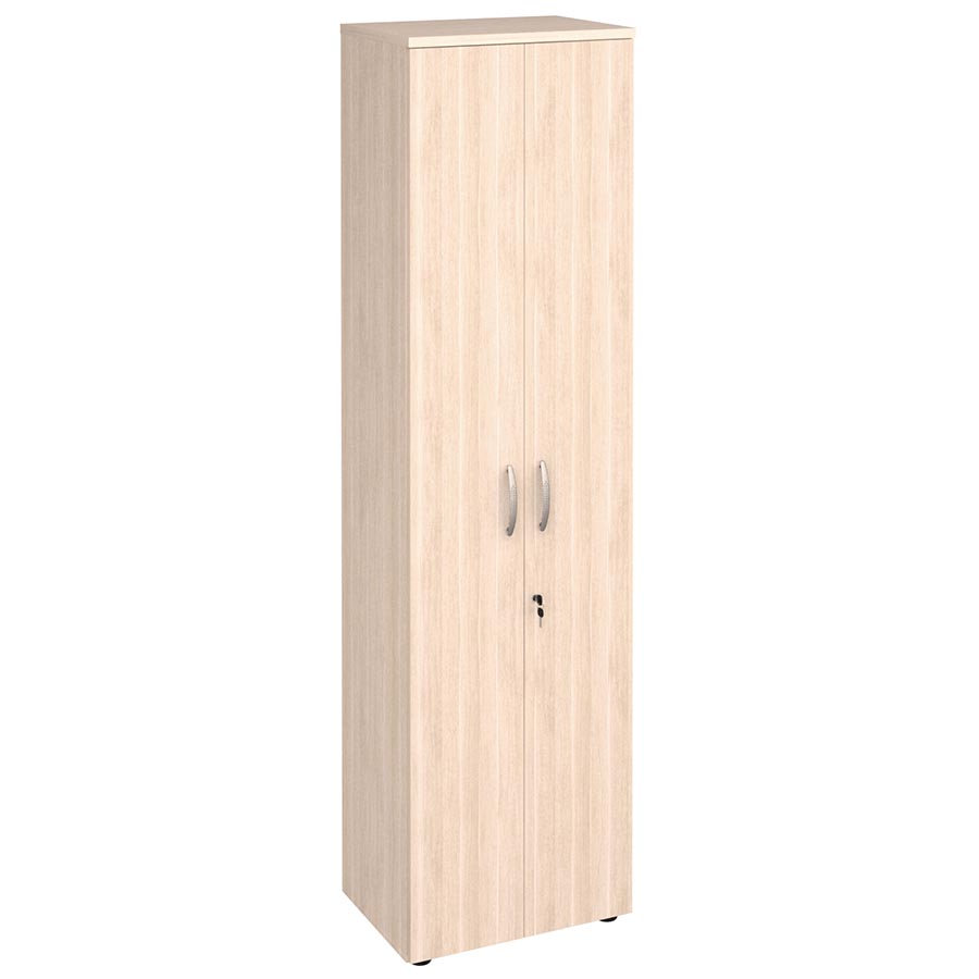 Шкаф для одежды со штангой «Альфа 63.43» является частью модульного набора мебели для офиса «Альфа». В верхней части шкафа размещена полка. Замок обеспечивает безопасное хранение вещей. Регулируемые по высоте ножки компенсируют возможные неровности пола. Металлические ручки подчеркивают современный дизайн модели.