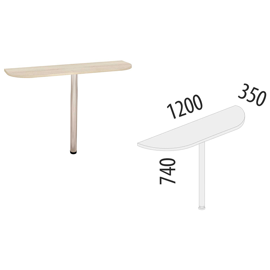 Приставка к столу «Альфа 64.29» является частью модульного набора мебели для офиса «Альфа». Ширина – 1200 мм. Скругленные углы обеспечивают безопасность при эксплуатации. Регулируемая по высоте опора компенсирует возможные неровности пола.