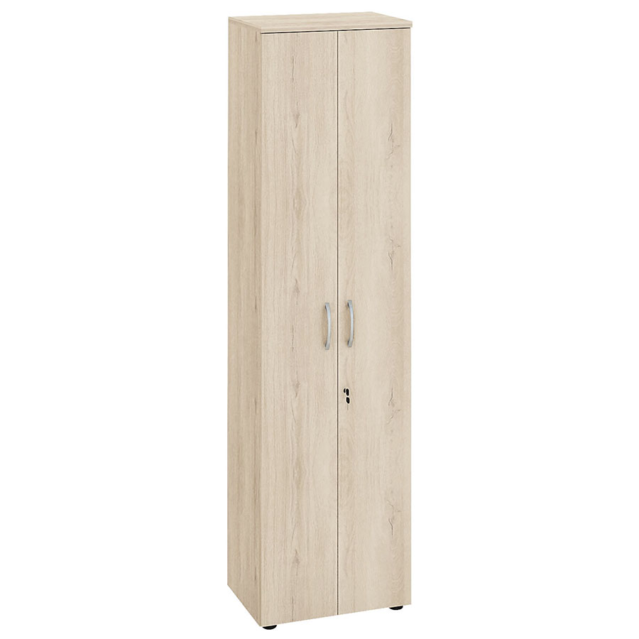 Шкаф для одежды со штангой «Альфа 64.43» является частью модульного набора мебели для офиса «Альфа». В верхней части шкафа размещена полка. Замок обеспечивает безопасное хранение вещей. Регулируемые по высоте ножки компенсируют возможные неровности пола. Металлические ручки подчеркивают современный дизайн модели.