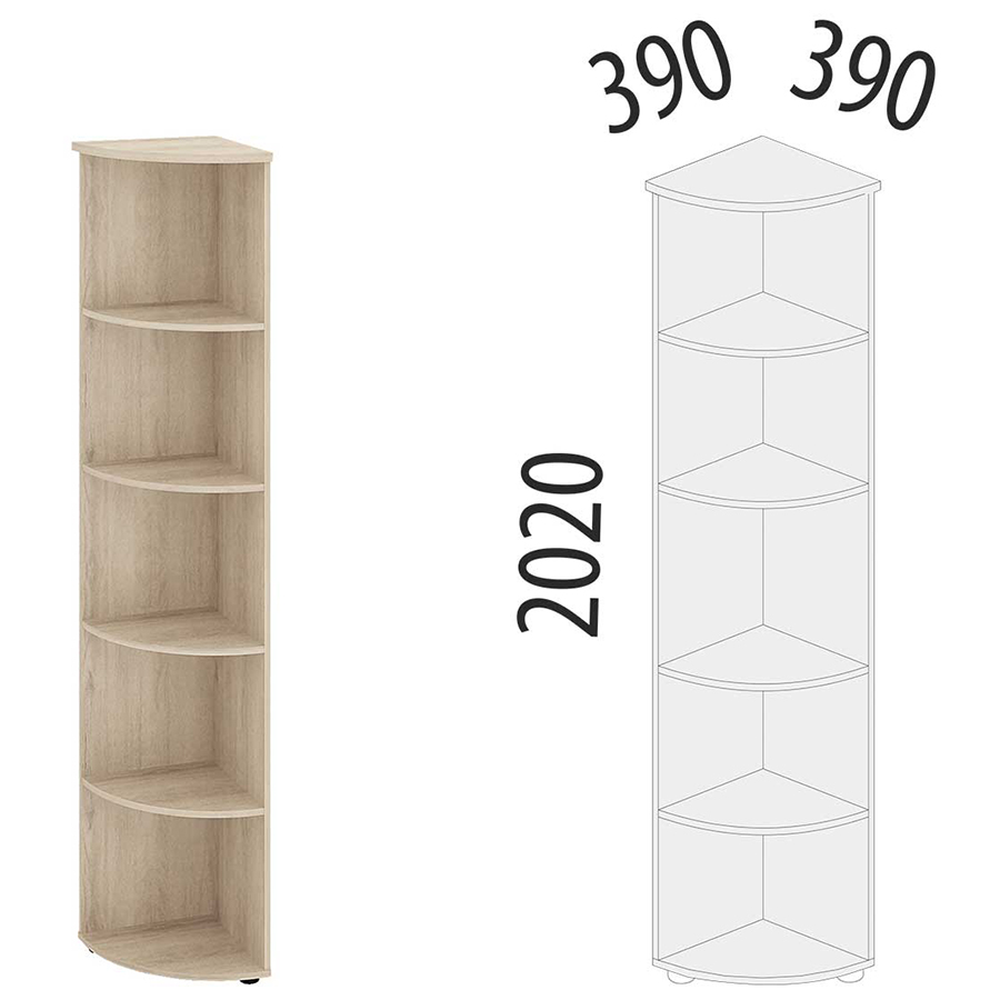 Угловой стеллаж «Альфа 64.49» является частью модульного набора мебели для офиса «Альфа». Предназначен для комплектации шкафов глубиной 390 мм, высотой 2020 мм. Устойчивость конструкции придают межсекционные стяжки. Регулируемые по высоте ножки компенсируют возможные неровности пола.