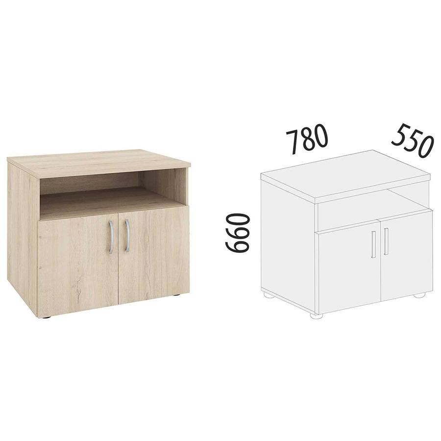 Тумба под оргтехнику «Альфа 64.45» является частью модульного набора мебели для офиса «Альфа». Демпферы обеспечивают мягкое закрывание дверей. Регулируемые по высоте ножки компенсируют возможные неровности пола. Металлические ручки подчеркивает современный дизайн модели.