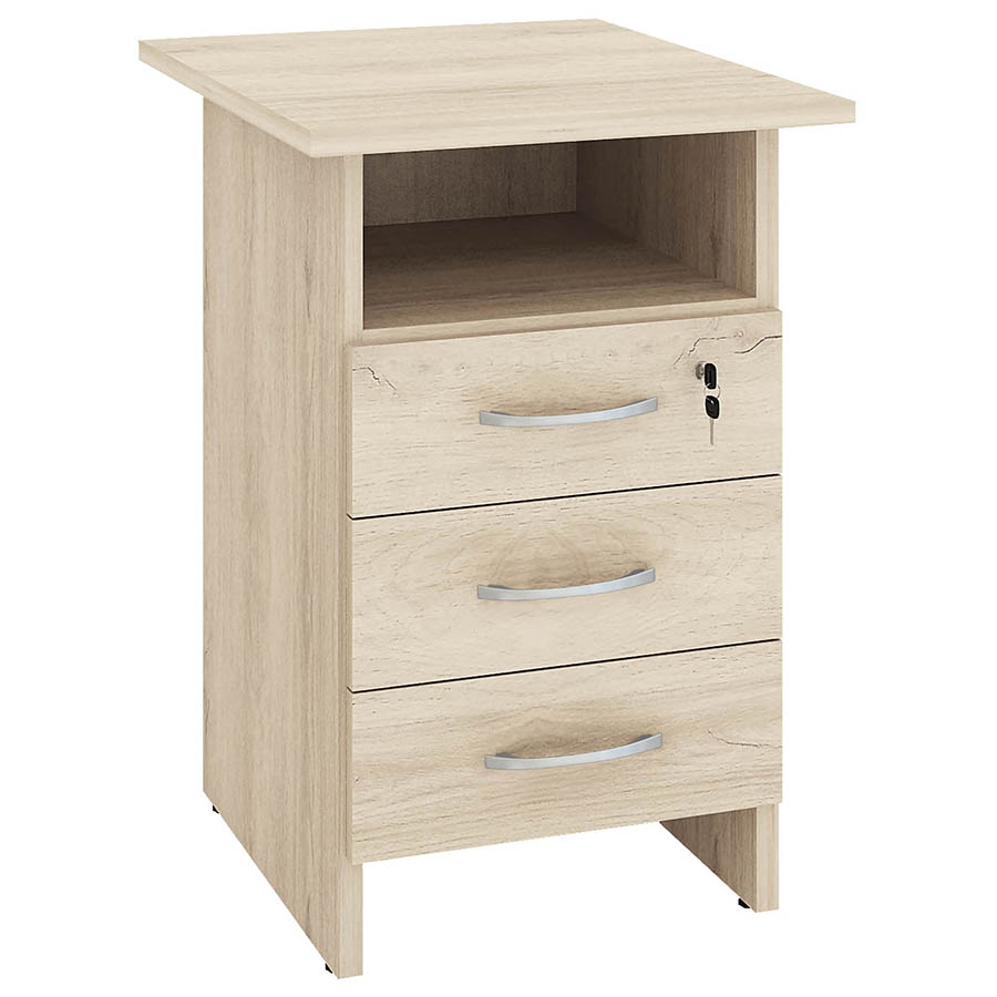 Приставная тумба с замком «Альфа 64.60» является частью модульного набора мебели для офиса «Альфа». Разворотная крышка позволяет соединять модуль с угловым столом с правой или левой стороны. Замок обеспечивает безопасное хранение вещей. В комплекте два ключа. Регулируемые по высоте ножки компенсируют возможные неровности пола. Металлические ручки подчеркивает современный дизайн модели.
