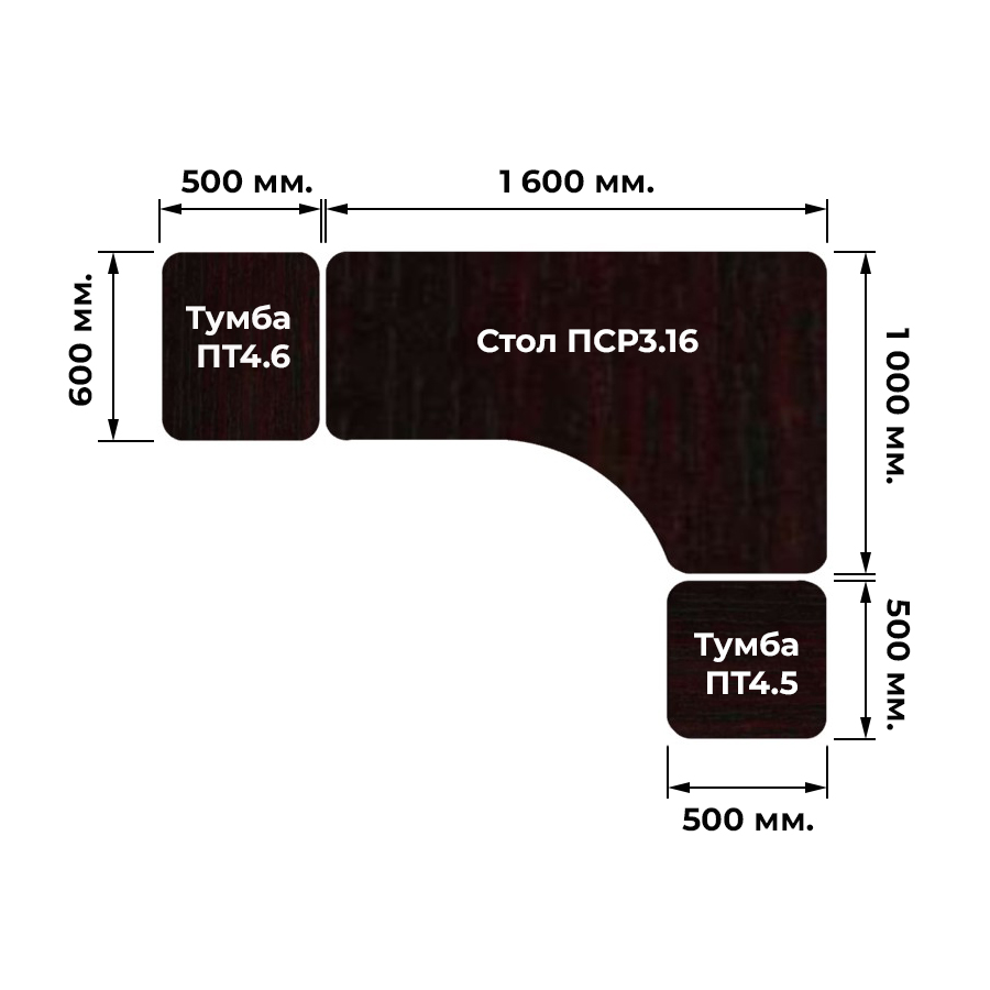 - Стол письменный (левый/правый) с кабель каналом;