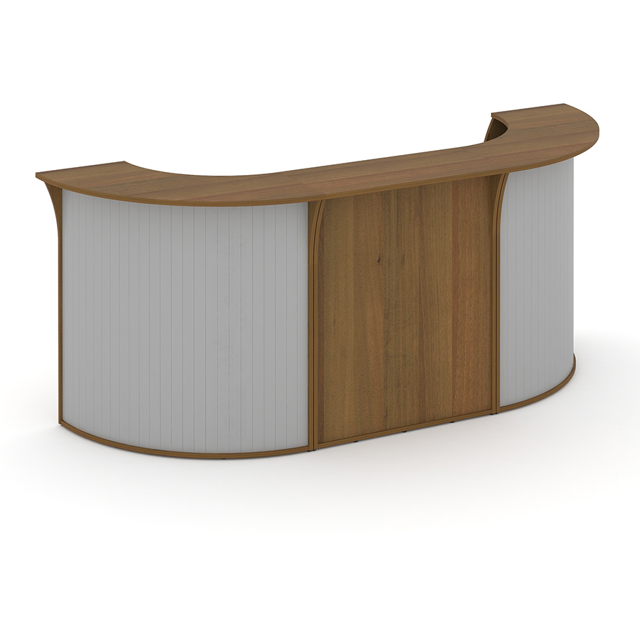 Состав комплекта: стойка ресепшен А.РС-1; фронт А.РС-5Ж 3/3 (2 шт); топ, дно А.РС-5Ж 1/3 (2 шт); полка для стойки угловой (завершающий элемент) А.РС-5.2 (2 шт); стойки А.РС-5Ж 2/3 (2 шт); стол письменный А.СП-1.