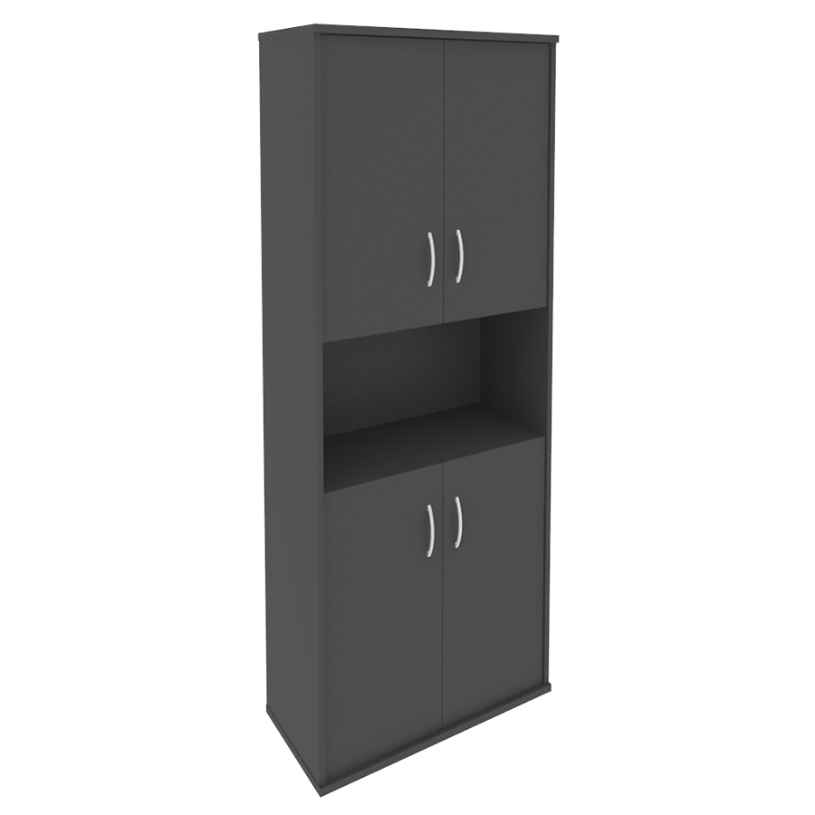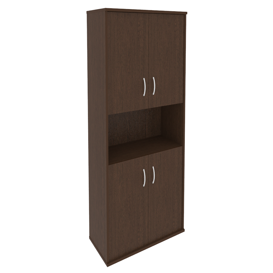 - Шкаф высокий, с нижними и верхними дверями, в центре ниша;