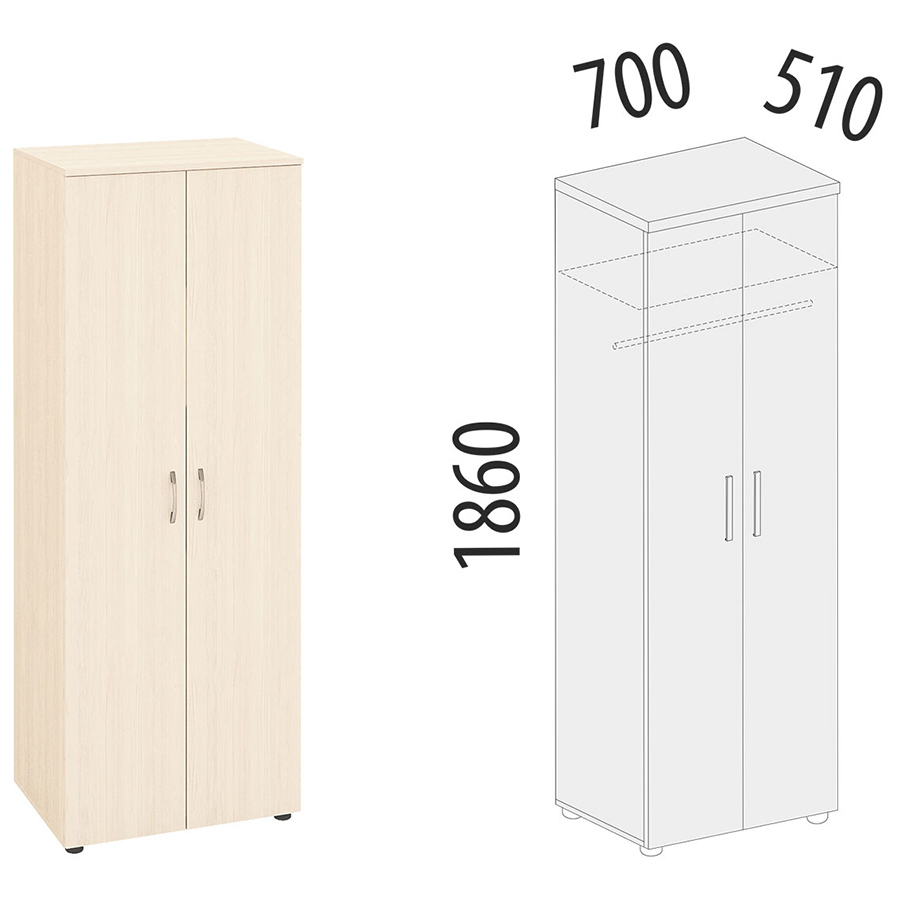 Ширина: 700 мм.; Глубина: 510 мм.; Высота: 1860 мм.