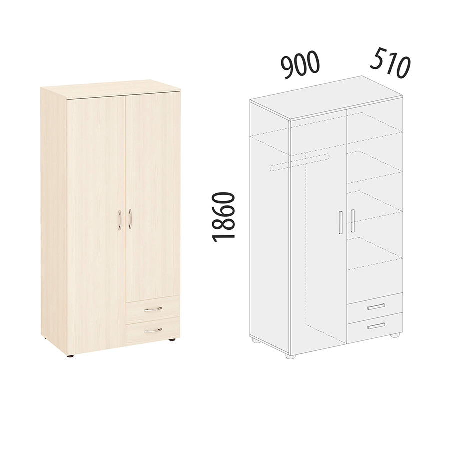 Ширина: 900 мм.; Глубина: 510 мм.; Высота: 1860 мм.