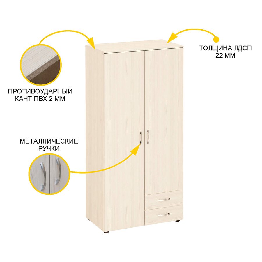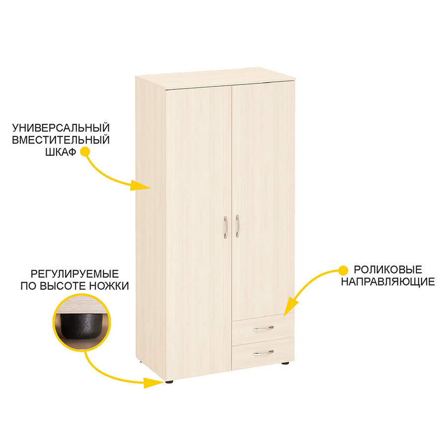 Многофункциональный шкаф «Рубин 40.105» является частью коллекции «Рубин 40». Шкаф выполнен из ЛДСП повышенной прочности в актуальном цвете Сосна «Астрид». Продуманный функционал позволяет использовать шкаф и в детской комнате, и в прихожей, и в рабочем кабинете дома или офиса. В левой части шкафа установлена штанга для хранения одежды на плечиках, в правой части расположены полки и два выдвижных ящика.