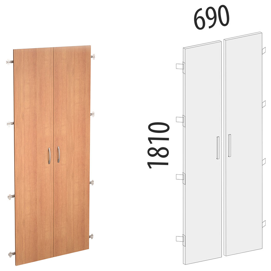 Двери ЛДСП 5 секций серии «Рубин 42.36» являются частью модульного набора мебели для офиса. Данными дверьми комплектуется шкаф 5 секций 42.31.